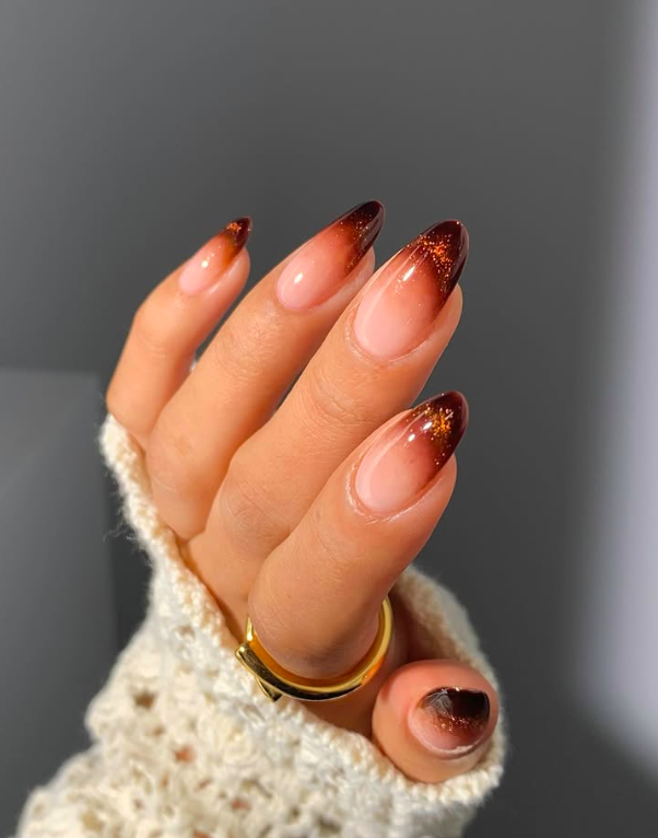 #19) Subtle Ombre Sparkle Almond Acrylic Nail Design