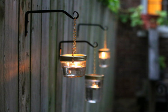 How cute are these DIY mason jar hanging lanterns from 17 Apart?