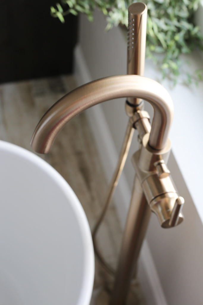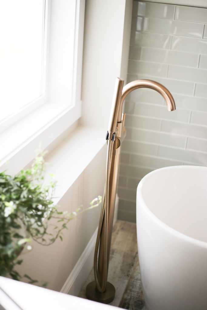 We didn’t have a ton of room for a tub (which is positioned right next to our shower) so a free standing option was a great choice to keep the space feeling open and airy.