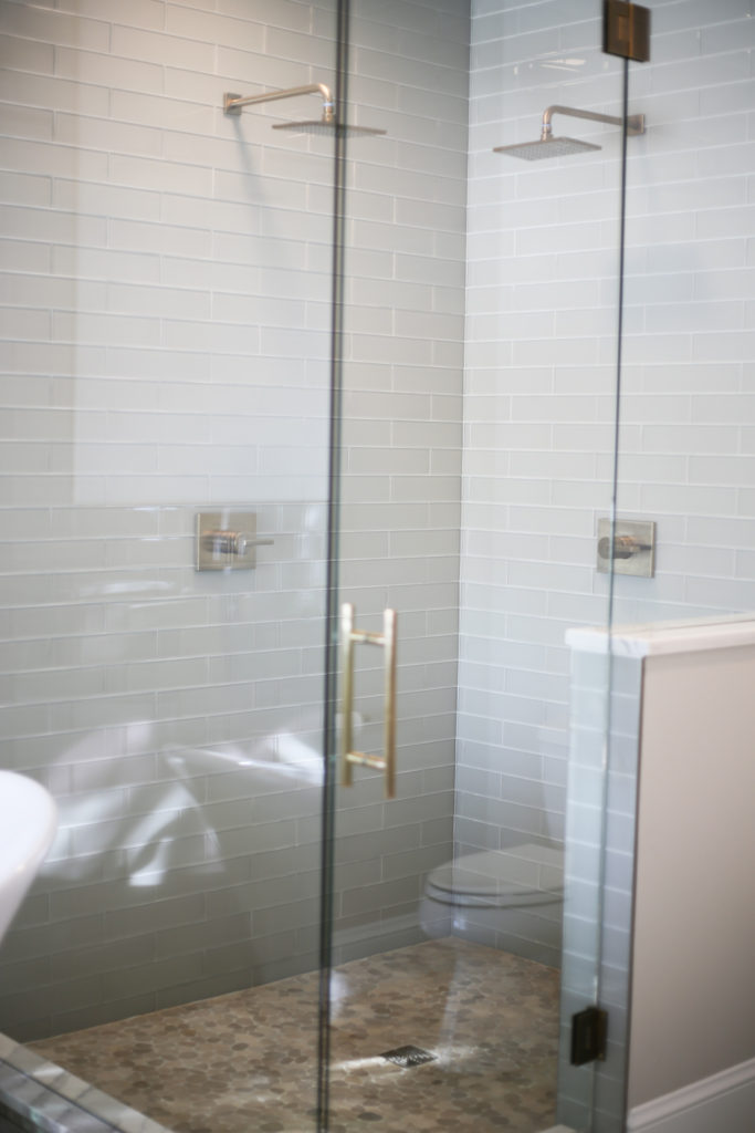 For this remodel we had out plumber run water lines for two shower heads, and I’m SO glad we did!