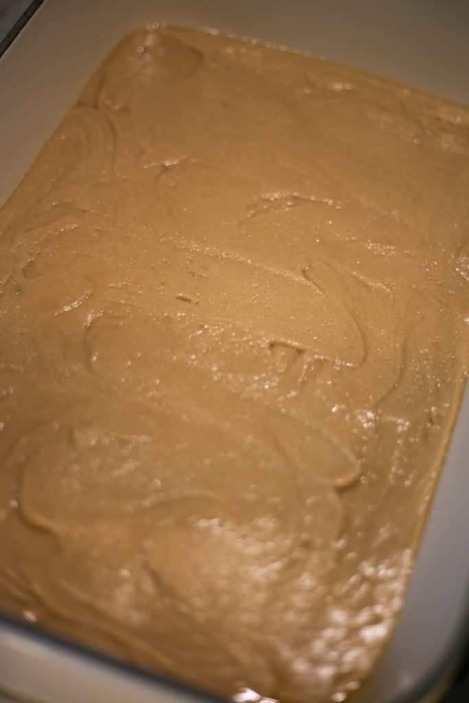 You’ll transfer your batter to a well greased 9×13 pan.