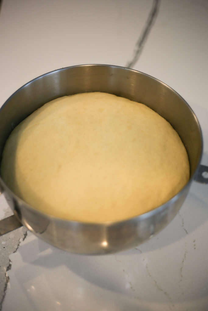 After dough has risen, punch it down and divide into two balls. Divide each half into three smaller balls for a total of 6.