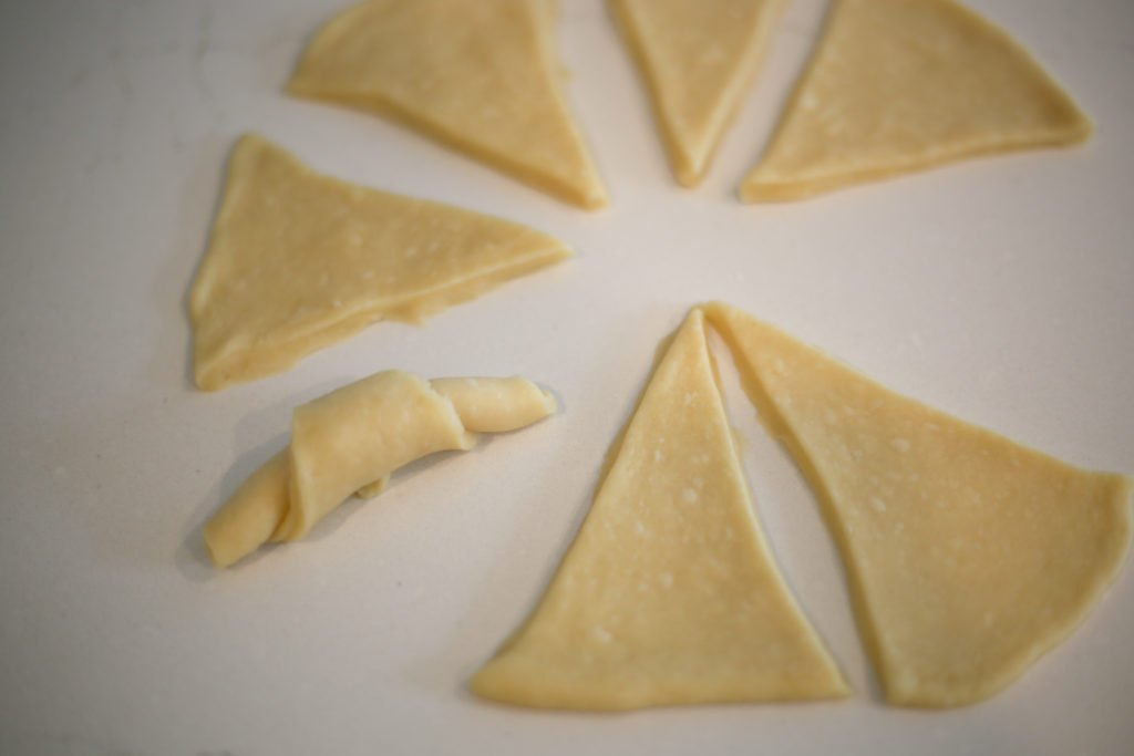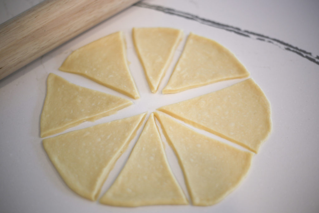 Using a pizza cutter, cut your circle of dough into triangles, just as you would cut a pizza.