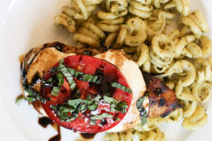 If you’re looking for a weeknight dinner recipe that is bursting with flavor, you are going to love this caprese chicken! It starts with a simple tangy marinade, and is topped with all of your favorite fresh caprese ingredients. A balsamic vinegar reduction and pile of warm pesto noodles makes this one of our family…