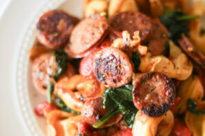 Hey there! Are you looking for an easy and healthy chicken sausage pasta recipe? Great, you’re in the right place. This recipe is so stinking good. It’s simple, flavorful, fresh and fast which is why it’s regularly in our weeknight meal rotation. The kids love it, and it cooks up in 20 minutes (or less)….