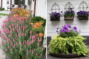 Overflowing Farmhouse Flower Beds and Front Porch Patio Arrangements