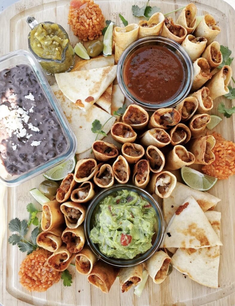 Like this savory and filling Mexican taquito charcuterie board idea.