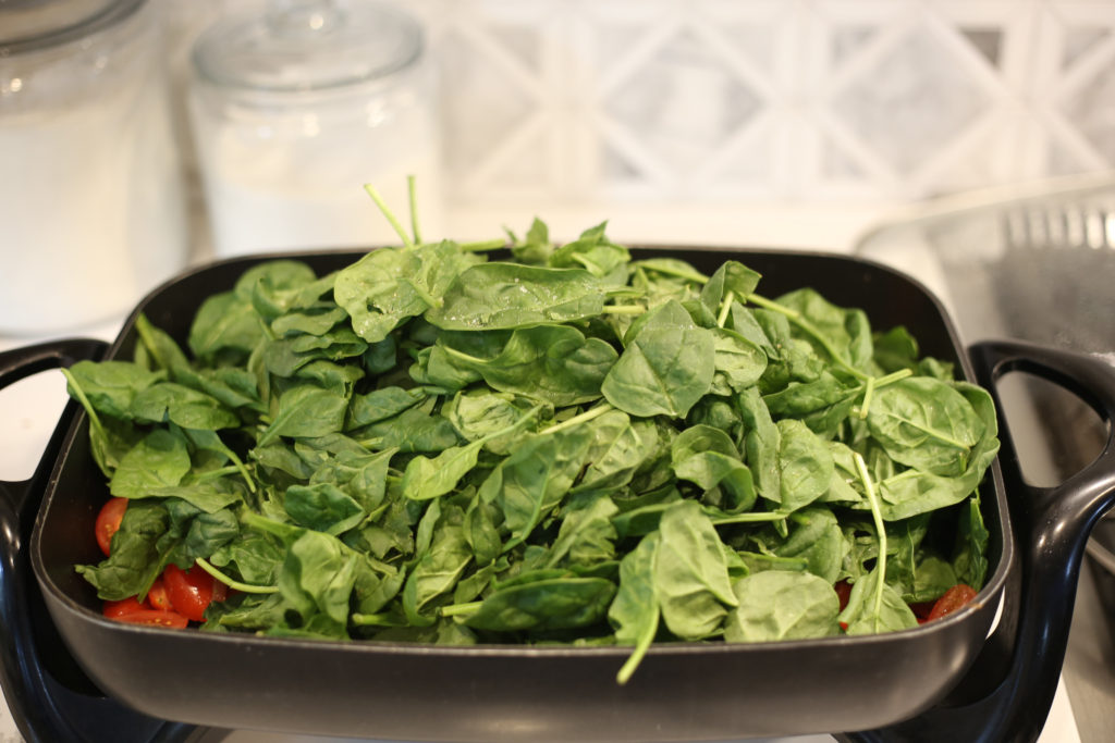Pile fresh spinach on top of tomatoes and cover for 4-5 minutes