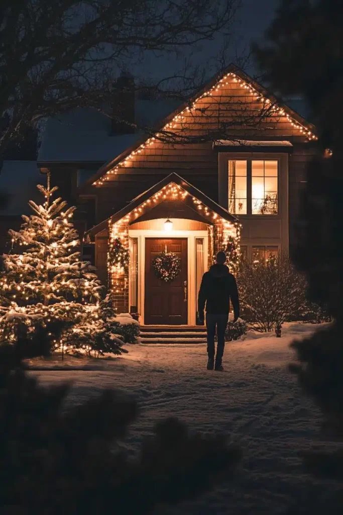 Hanging lights on the peaks of your home looks incredible in creating Christmas aesthetic.
