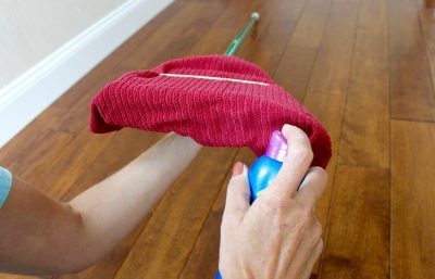 This genius quick cleaning tips involves wrapping a microfiber cloth around the end of a broom.