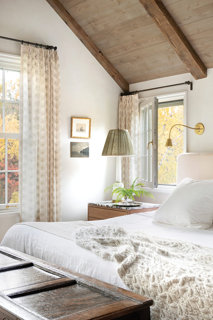 The board and batten wall detailing offers the perfect backdrop to frame the headboard space.