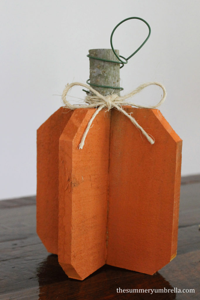 There are a million DIY tutorials for wooden pumpkins. I like this one from The Summery Umbrella best.