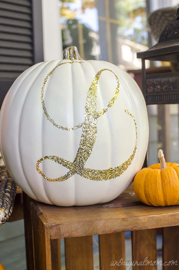 Meredith at the Unoriginal Mom is here to keep us glam this fall with this lovely glitter monogramed pumpkin.