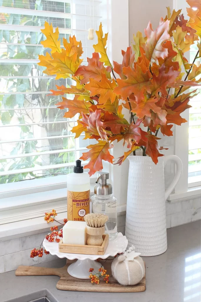 This simple arrangement of pretty fall accents and smells is the perfect kitchen counter top decor.
