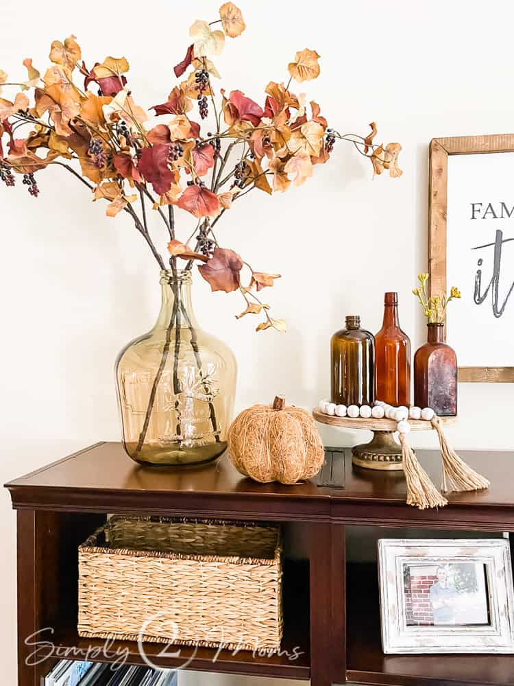 Fall decor around your entryway side table is the perfect way to add cozy fall vibes to yoru home.