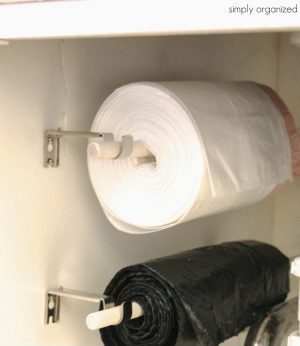 The large box of tall trash bags takes up so much room under my sink. This idea from Simply Organized frees up some of that under cabinet storage area for other items. It also makes trash bags easy to access!
