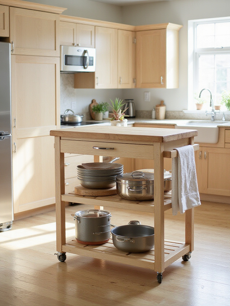 Keep everyday cooking essentials neatly contained in a centrally located rolling cart.