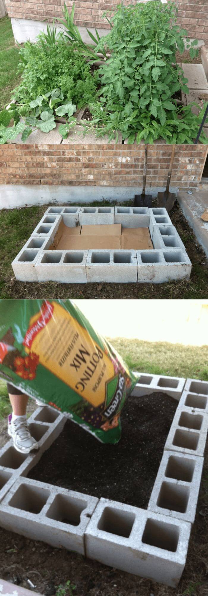 #15) Simple Cinderblock Raised Garden Bed Design Idea