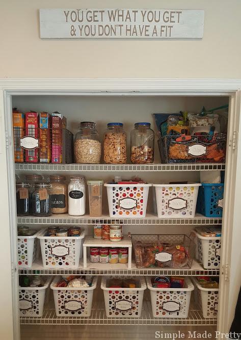Simple Made Pretty completely remodels her clutter pantry using dollar store bins and baskets!