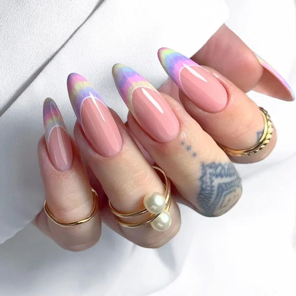 #23) Gorgeous Rainbow French Easter Nails