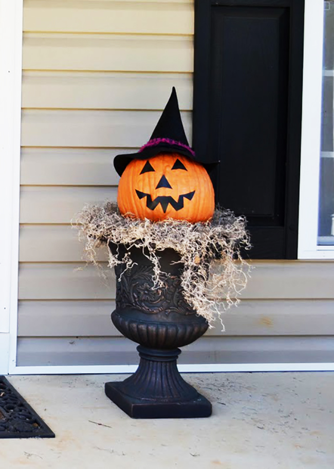 I wanted to include this simple and stylish idea from Nicedecoration.info. Your pumpkin can be the perfect decor piece when placed in a front porch planter.