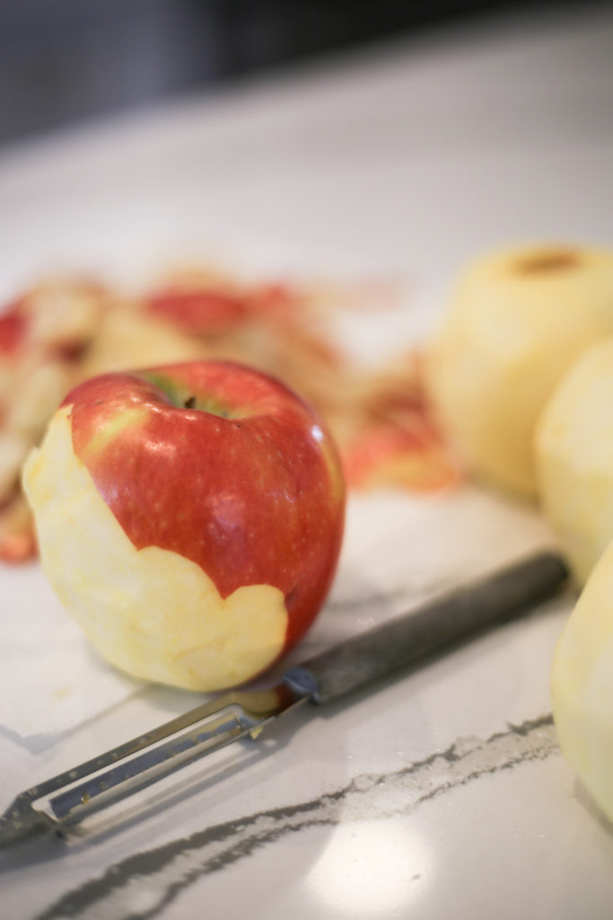 Next up will be prepping your apples. This is probably the most work of the entire apple pie process, but it’s completely worth it!