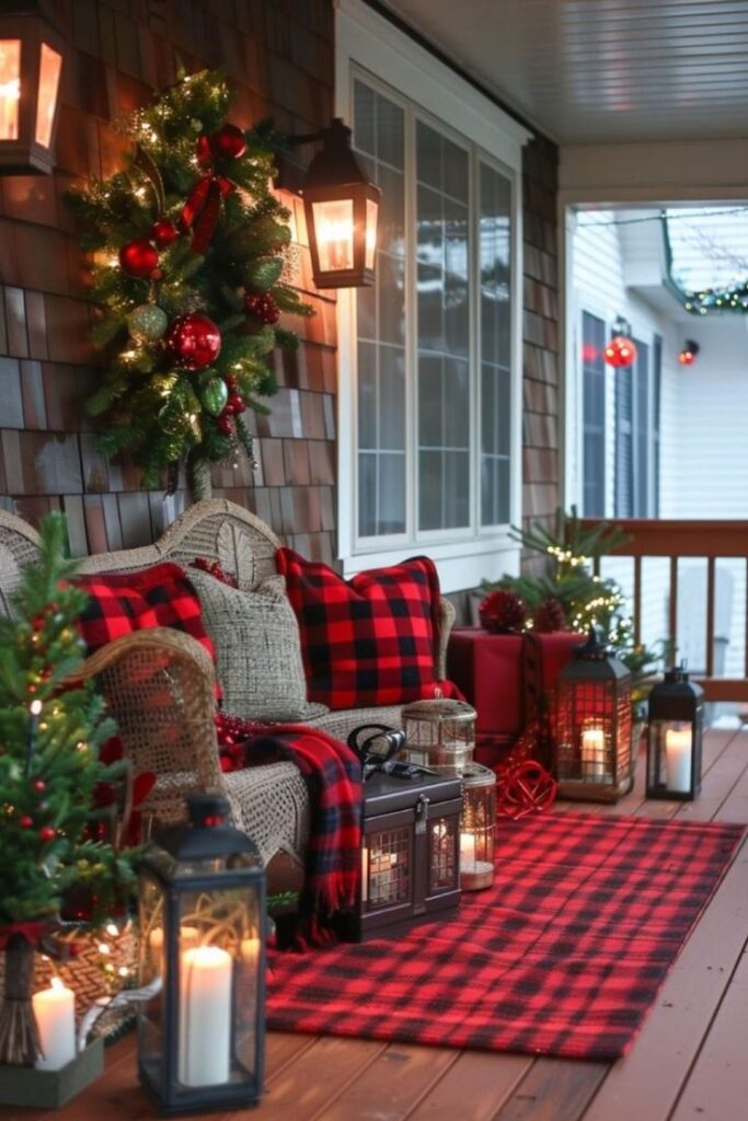 #1) Plaid Outdoor Front Porch Christmas Decor