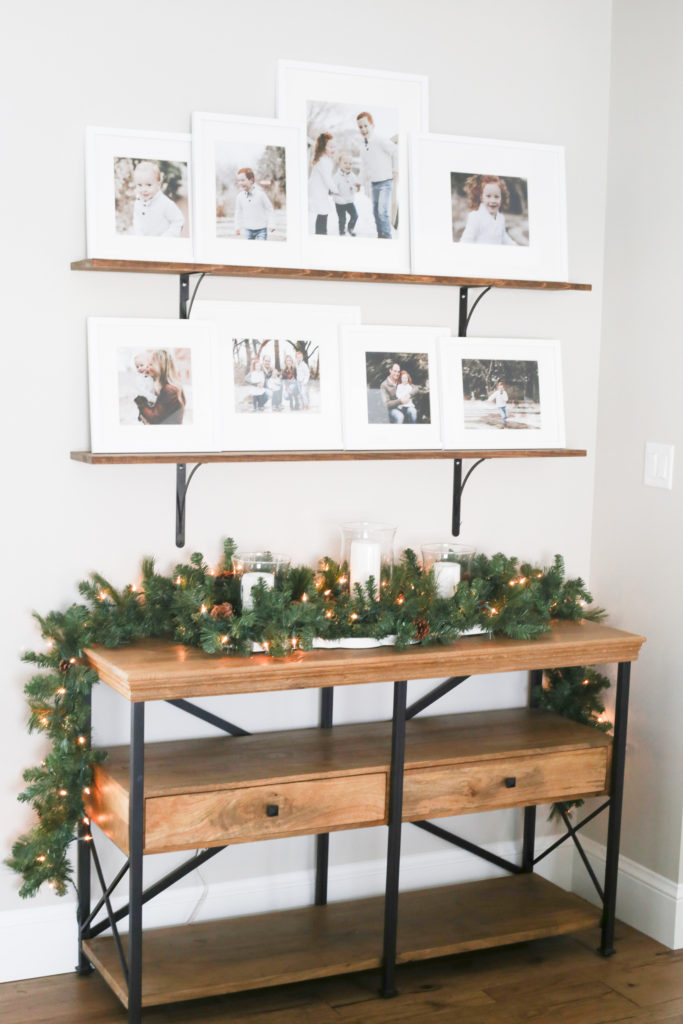 I created this family photo collage after doing some homework on farmhouse shelving displays.