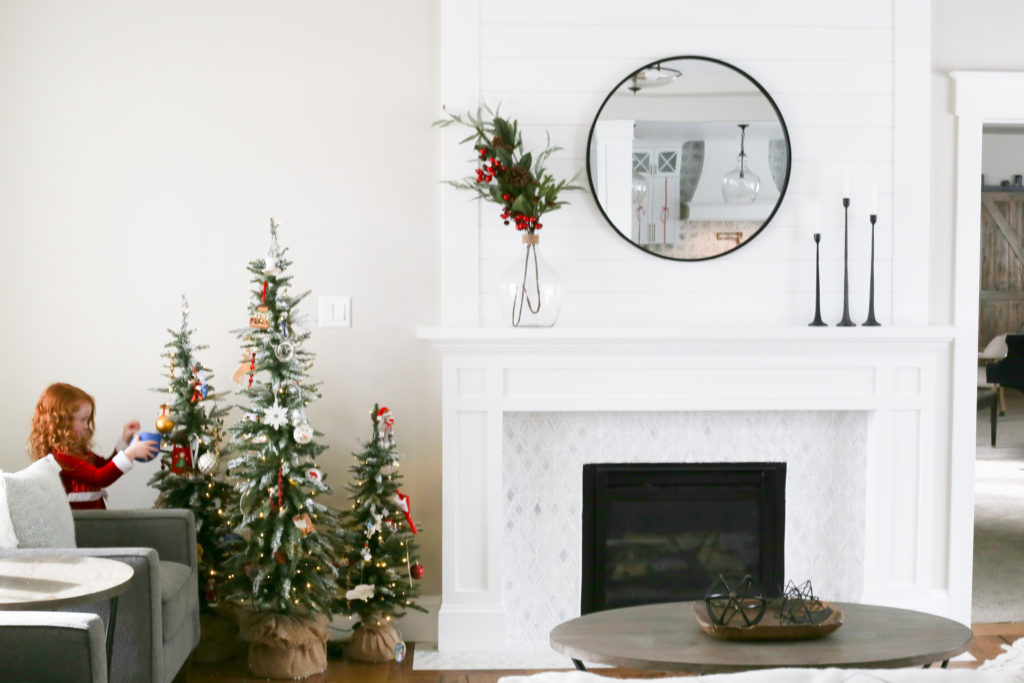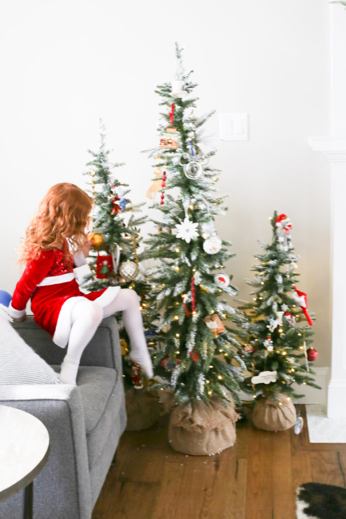 Each kid decorates their own tree with meaningful family ornaments and in toddler style placements. ๐