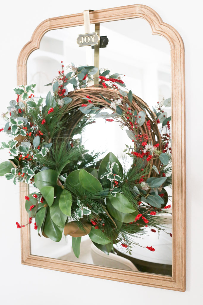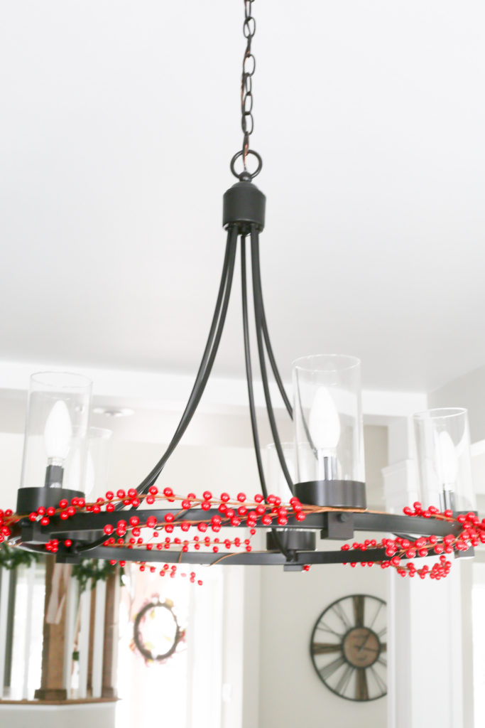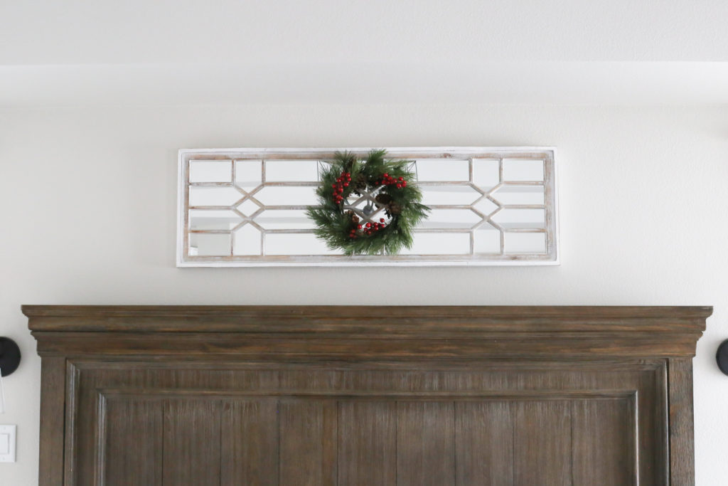This mantle might be one of my favorite spaces! I love the lit berry garland and bright white stockings.