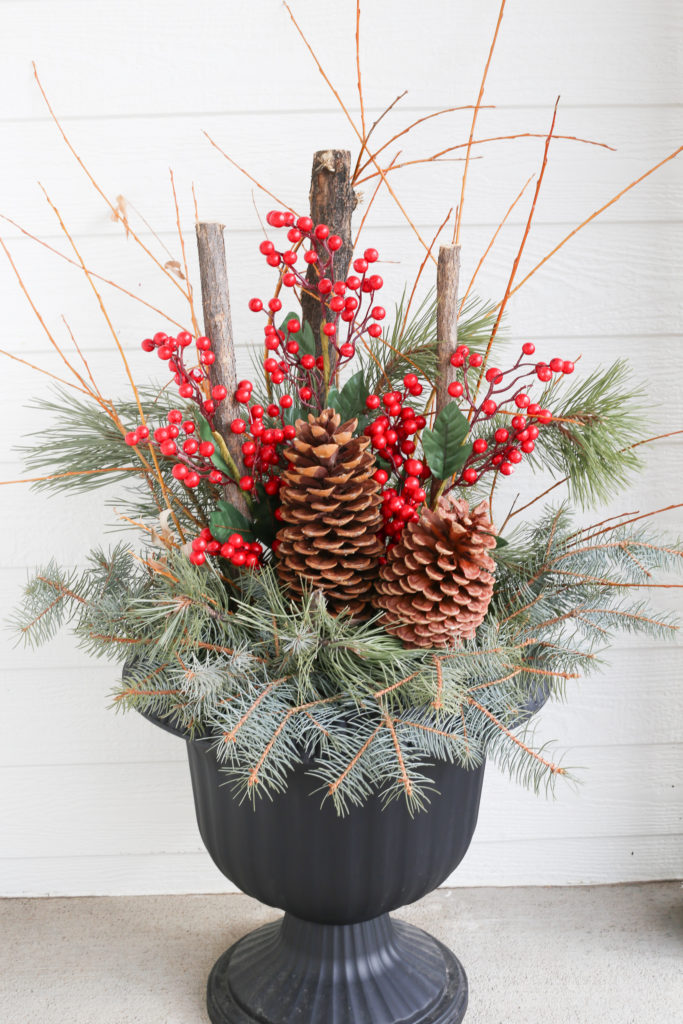 Inspiration for these outdoor planters came after a tree trimming yard project this fall.