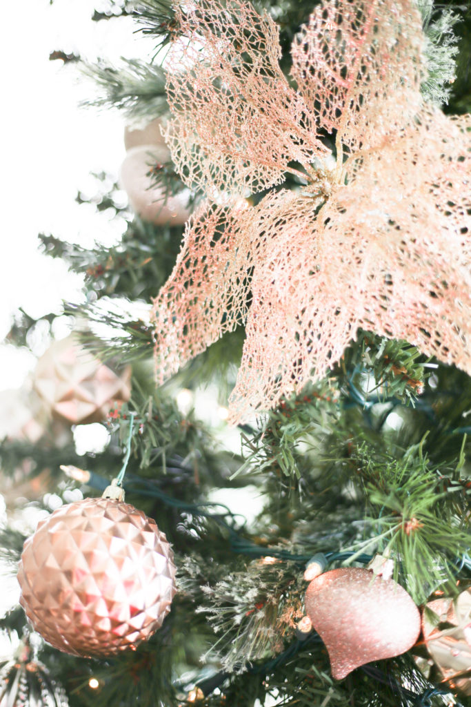 This tree I did a mixture of gold, copper, and metallics. My idea was to have it coordinate with a simple low profile tablescape.