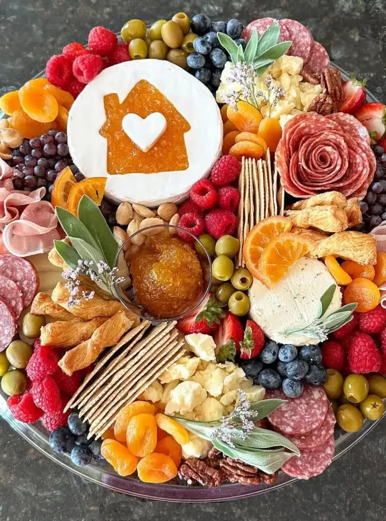 Another great guest friendly housewarming party idea is a charcuterie board.  They have such great variety and can stand as a main course all on their own.