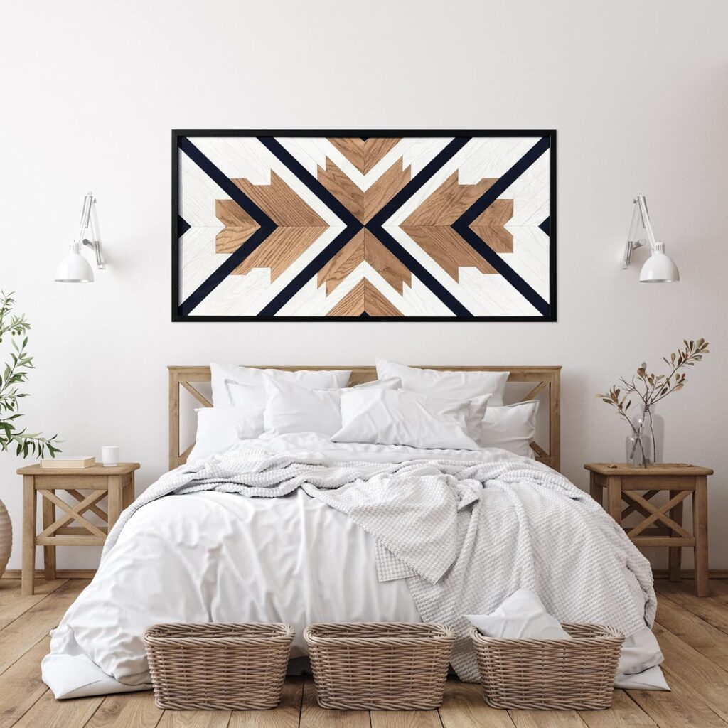This gorgeous rustic inlaid wooden abstract art adds incredible texture to any large wall space.