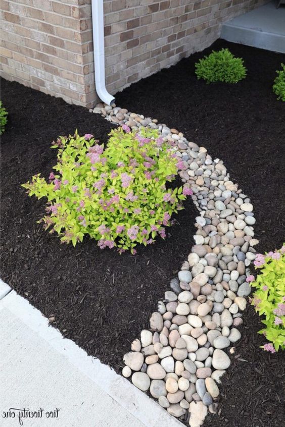 #13) Smart & Stylish Front Flower Bed Gutter Drainage Idea