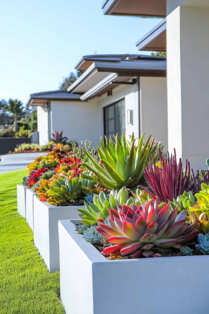 #8) Sensational Succulent Landscaping Idea For The Front Of The House