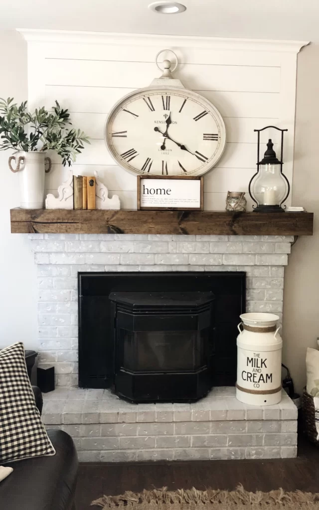 This farmhouse mantel as featured on Home Wow Decor has everything in the right place. I love the visual interest of the window frames that run vertically and horizontally.