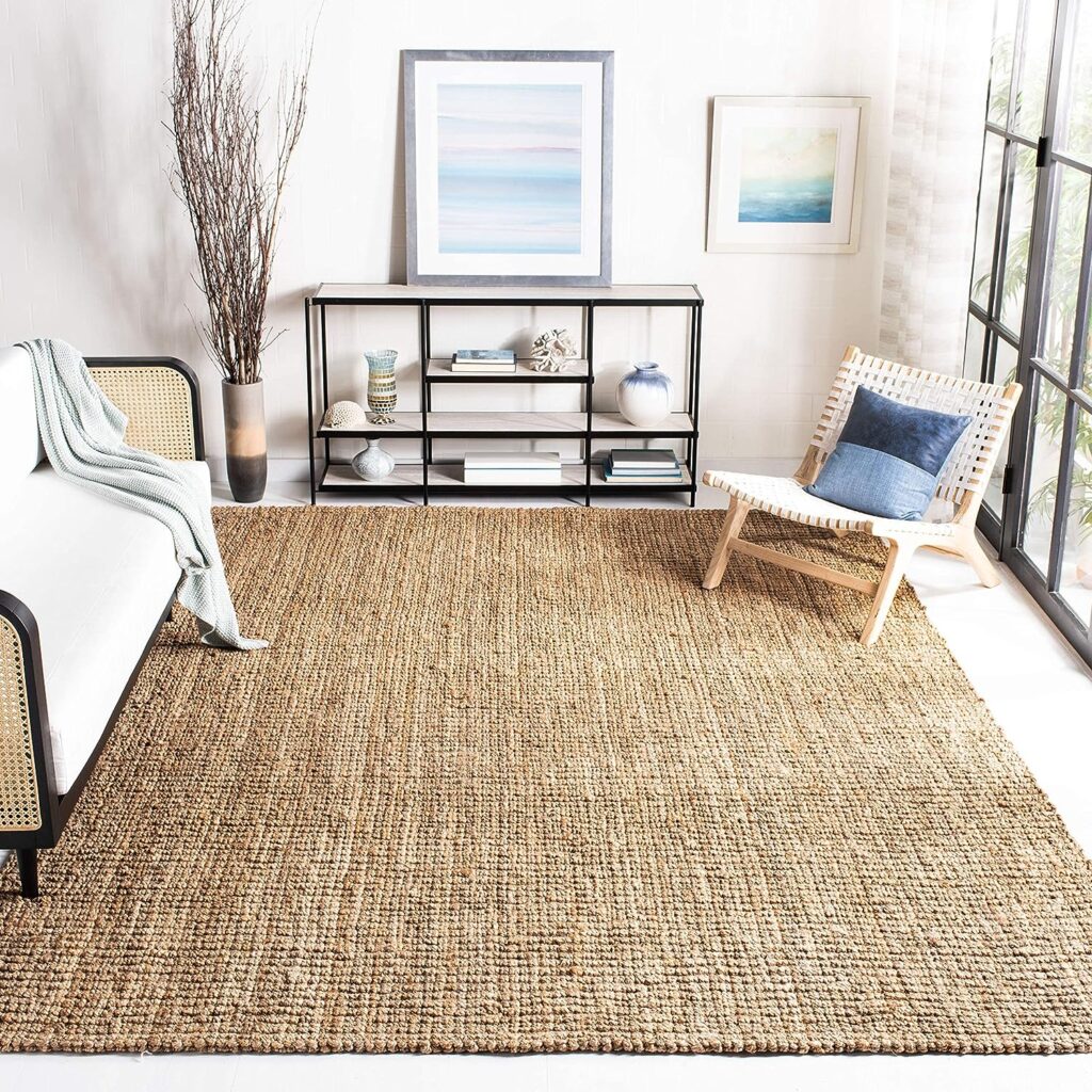 This natural toned modern coastal living room works in jute fibers and woods beautifully.