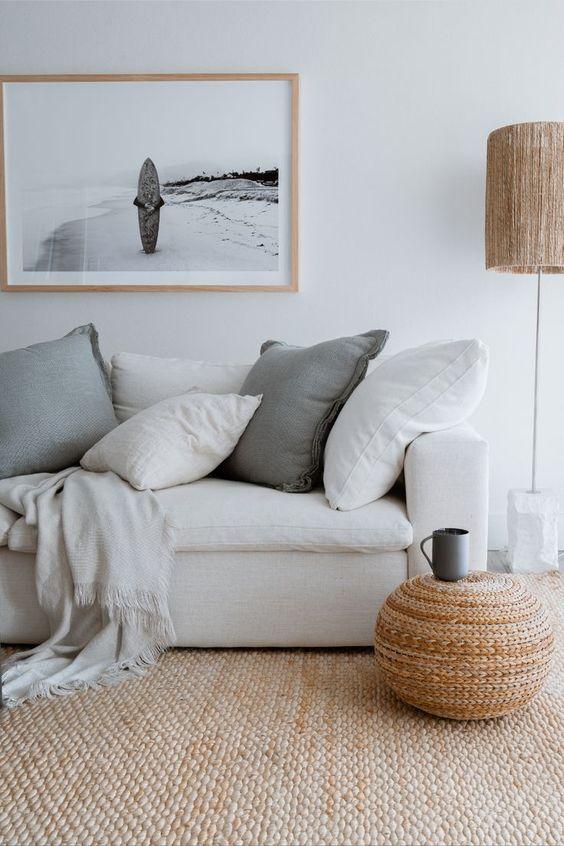 Consider adding a statement piece of coastal artwork, as well as living room decor and accessories that compliment.