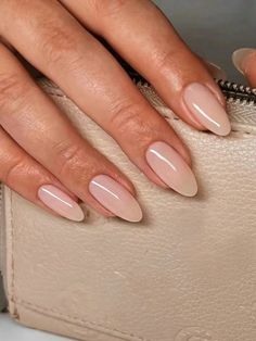 This simple and clean classic manicure boasts an almond nail shape with a modest medium length.