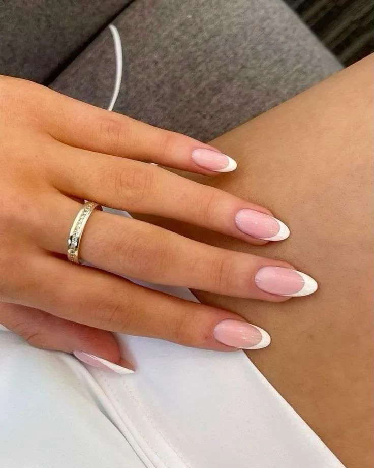 Notice the french tip line is softened to blend gracefully into the pink/nude base color.