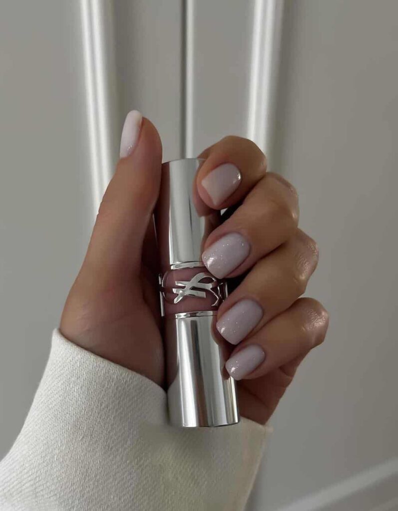 A pearl or iridescent top coat is seen throughout old money nail design.