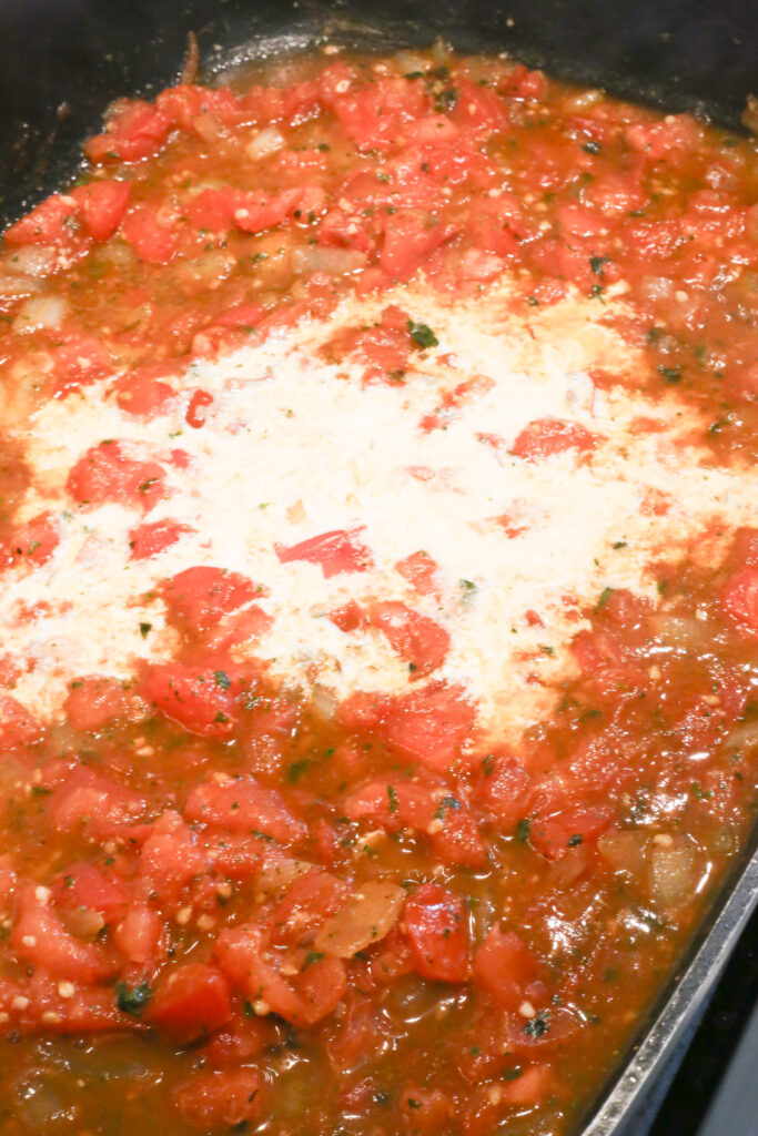 Gently stir in cream or half and half to create a blush tomato sauce.