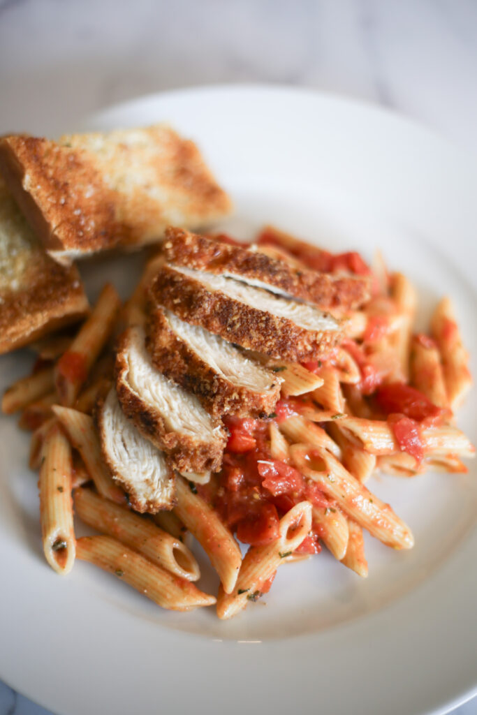 Crispy Parmesan Chicken Pasta Recipe With Spicy Tomato Cream Sauce