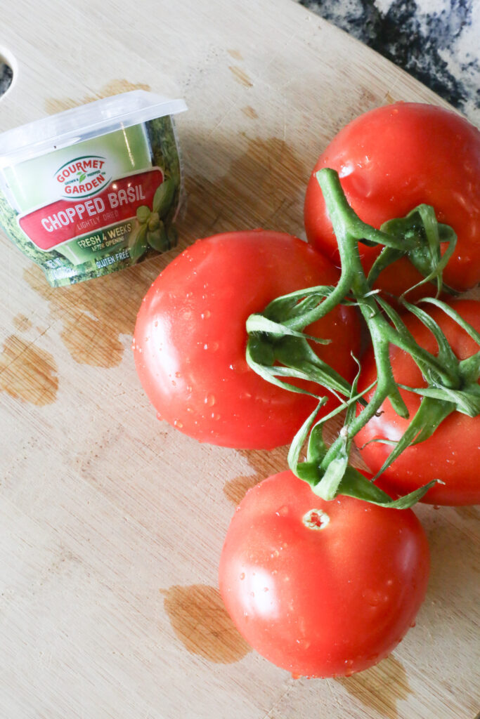 I love to take a shortcut from the store and use this gourmet garden chopped basil.