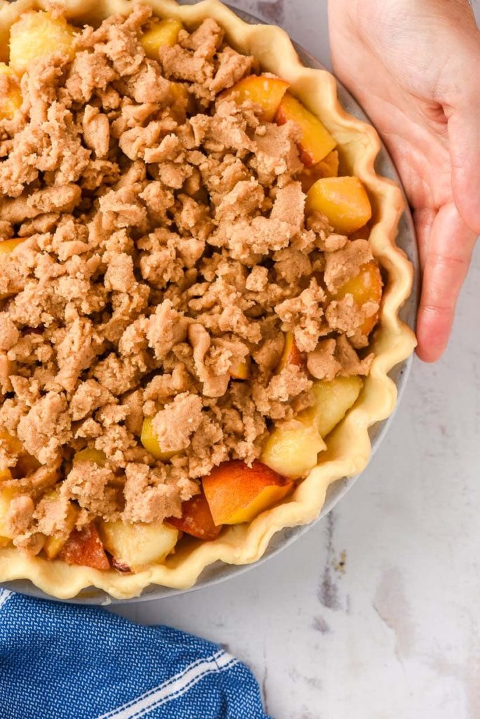 I love the crumble topping on this pie to mix up flavors and texture!