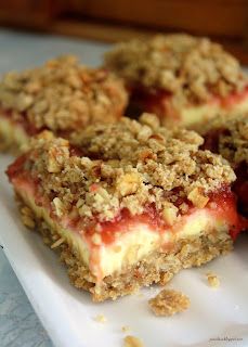 A tangy rhubarb custard on the base with tender cheesecake baked on top ~ it’s the perfect combination.