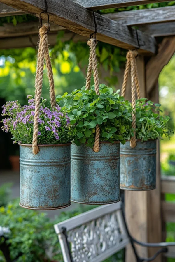 #25) Creative Hanging Pot Rustic Yard Idea