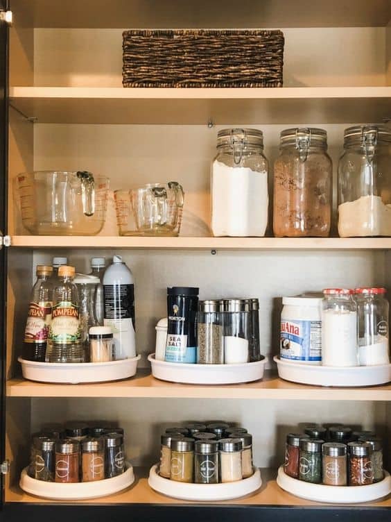 A quick turn can display everything you need without pawing towards the back of the cabinet looking for that hidden seasoning.