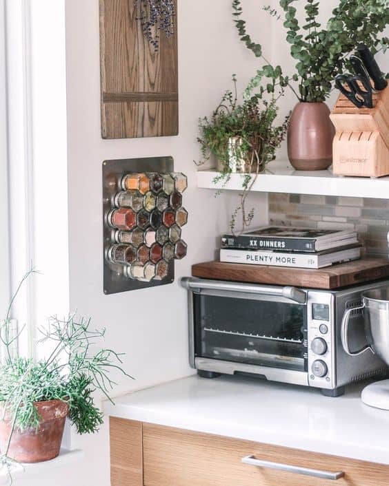 It’s a stylish addition to any modern farmhouse kitchen while keeping spices highly visible and easily accessible.